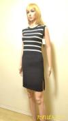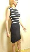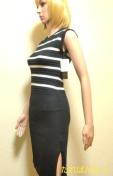 [商品情報] 綺麗なランダムBDリブ切替ののニットワンピです。 ブランド:イチオク 色:モノトーン系 サイズ:F 平置き⇒肩幅37cm、胸元幅37cm、総丈89cm、ウエスト33cm、裾幅42cm 素材:ポリエステル ストレッチ:あり 裏生地:なし 他:新品タグ付きです。