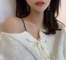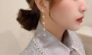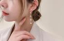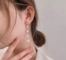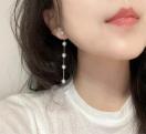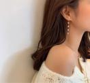 耳元で揺れる小粒のパールビジューが顔周りを華やかに彩るピアス