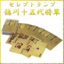 初代将軍徳川家康から十五代将軍慶喜まで、歴代将軍の名前が入った金色のトランプ。