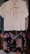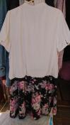 数回使用、アイボリー×黒地に花柄、