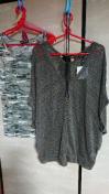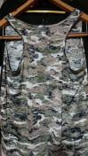 カーキ色、スパンコールが所どころにある ドルマントップスと、迷彩柄タンクトップ、アクセサリー付きの3点セットです。