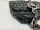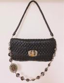 ビジューチェーンは黒色で、ターンロック部分とチェーンの楕円のmiumiuロゴを囲っている小さな丸いビジューはスモーキークリアグリーン色です。
