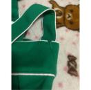 大きい白い丸ボタンがグリーンの生地に映えて可愛い。