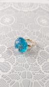ウミガメと貝とシェルのアクアブルーのドーム型リング
