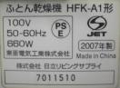日立/HFK-A1布団乾燥機衣類・靴対応 アッとドライ中古美品2007年R040124