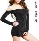 スパンコール キラキラ ラメ入り シルク 生地 セクシー ミニ スカート ワンピース 長袖 ボディコン タイト ドレス & Tバックセット