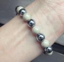 *8ミリ玉 北投石…台湾の北投温泉と秋田県の玉川温泉でのみ採掘される希少石です。源泉の沈殿物によって生成された鉱物でラドンを放出し、古くから「薬石」と呼ばれました。免疫力、自然治癒能力を高め、健康・美容業界からも注目されている鉱石です。