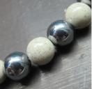 *8ミリ玉 テラヘルツ(純度N6 99.9999%)…水晶を高温で溶かし、二酸化ケイ素から純度の高い半導体のケイ素に加工した人工鉱石です。1秒間に約1兆回振動するテラヘルツ波を放つとされ、その電磁波との共鳴効果が細胞のリズムを正常にするとされます。