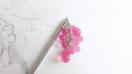 はっきりしたピンク色のビーズを鈴なりに留めつけました。