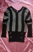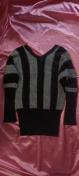 ┗両Vネックでスッキリ小顔効果☆太ストライプ柄が縦長効果でドルマンシルエットが着痩せ効果で嬉しい♪伸ばすとお尻がスポッと隠れます♪ラメ糸使用でキラキラ上品♪デカボタンが可愛い♪薄手で軽くて着やすいです♪首もとが開いてるのでインナー重ね着が、おすすめです♪キラキラお洒落な長袖ドルマンロングニットセーターです☆