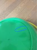 以前、祖母が一時お菓子入れにしていたのですが、その後大きな棚に替えた為、しまい込まれていました。バケツの様な取っ手付きですが底面に亀裂あったので、物入れとしてお使い頂ければと思います。