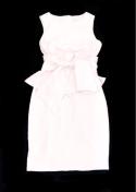 ウエストのペプラムデザインとフロントにもバックにも結べるリボンが華やかでパールネックレスを合われば結婚式や二次会