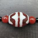 天珠は瑪瑙に特殊な加工で宗教的な模様を入れた石で、チベットでは古来よりお守りとされ身につけられております。