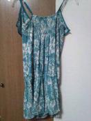 これは、とっても可愛い胸元フリルのさらっとしたシフォン系の上品コンビねで、とっても着やすく、ラインも綺麗でショルダーも調節できるので、ミニすぎず身体のラインをきにせずはきやすいタイプです!素材も上質だし、Gジャンやかぎ針ボレロなど羽織るととっても可愛いですよ!裏地もついていますので、透け感なしで一枚で着れます。また、サイズは7号の方から、9号の方まで、ストレッチがきいているので、幅広くお使いいたkだけます!ウエストもゴムだから、したにもまだ、重ね着でき、重宝しますよ!これは、数回しかきてなくて、まったく汚れなしの綺麗な状態で、是非お使いいただきたいです!春夏にはもってこいのアイテムです!締切日時