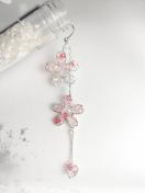 ワイヤーで作った桜のモチーフに花びらと淡い水色のビーズをそえて。