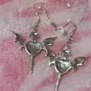 ウイングハートがクロスのシルエットになっていて、ハートの中にスカルヘッド。さり気なくインパクトある両耳用ピアスです。