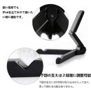 下部の支えは2段階に調整可能です。狭く開けばスマホ用として、広く開けばタブレット用としてお使いいただけます。折れ曲がる各部位は、カチッと固定される使用かんで、数段階に調整可能です。