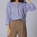 シャーリングとステッチワークで袖コンシャスに仕上げたシャツ。前後をVネックに仕上げることで、こなれた抜き衿スタイルの着こなしもかないます。すっきりしたストライプで爽やかさもプラス締切日時