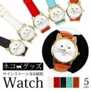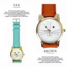 ●全5色!!ラインストーン耳デザイン&猫絵腕時計PUレザーベルト