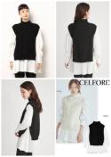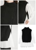 celfordセルフォードレイヤードニットプルオーバーニットベストトップスプリーツブラウスシャツワンピースチュニックパワーショルダーブラックホワイトハイネックモックネックタックギャザー黒白2way