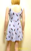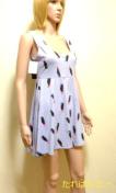 [商品情報] 可愛いPOPなリップ柄のミニワンピです。 ブランド:イチオク 色:パープル系 サイズ:F 平置き⇒肩幅29cm、胸元幅40・5cm、総丈77cm、ウエスト36cm、裾幅90cm 素材:ポリエステル ストレッチ:あり 裏生地:なし