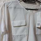 ドロップショルダー、Vネック、ゆったり身幅で楽チン着心地。前裾はゴム入、うしろ長めのタイプ。胸部分にポケット付き。ボトム次第でカジュアルにもドレスアップにも可能なアイテムです。