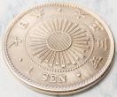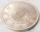 当時竜を尊ぶのは清国の思想であるという意見が高まり、貨幣の図案から除こうという動きが出てきたため、竜図が廃され旭日に置き換えられています。