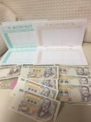 みんなのター坊と、けろけろけろっぴの通帳風メモ おこずかい帳と、こども銀行券です。