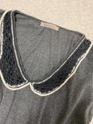 コットン100 杢がかったグレー色 胸元の編みが可愛いです。
