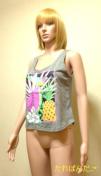 [商品情報] フルーティプリントが綺麗なオーバーサイズのタンクです。 ブランド:Mei Chuan cool son 色:グレー サイズ:F 平置き⇒肩幅30cm、胸元幅46cm、総丈53cm、裾幅49p 素材:ポリエステル/コットン ストレッチ:あり 他:新品タグ付きです。 少し商品タグの糸抜けがありますが、気にされない方には、素敵なお品ですので、如何でしょうか。