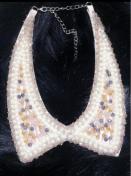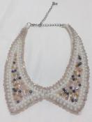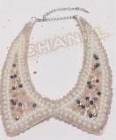 ビーズやパールを組み合わせて繊細な模様にした付け襟ネックレス。