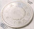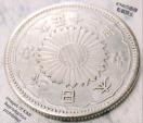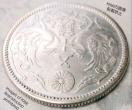 このとき制定された銀貨の模様は、八咫烏銀貨の裏面の八咫烏とローマ字表記を除き、表面のデザインも若干修正したもの(文字はやはり隷書体)が採用されました