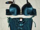 つるつるサテン風のグリーンの生地にフロントファスナー使いで寄せてのメイクアップも簡単、ショツはサイドひも結びタイプ、ストラップとパッドは取り外しができます。サイズ アンダーバスト 75 バスト 90 ヒップ 87〜95 素材 ポリエステル ポリウレタン その他 新品でお届けいたします。男性の入札も歓迎いたします。定形外普通郵便で発送の送料300円で発送できます。