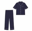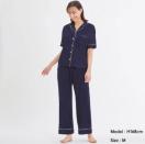 アロエ成分配合のカットソー素材で仕立て、保湿・抗菌効果を備えたパジャマです。前開きの半袖トップスと、クロップド丈のパンツがセットになったベーシックなデザイン。リラックスムードを盛り上げる、なめらかな肌触りとやさしい着心地が魅力です。
