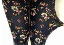 濃紺地に可愛い小さい草花がプリントされたレギンスパンツ。
