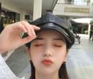 キャスケットの可愛いさとフェイクレザーのシックな感じとがマッチした、 個性溢れるキャスケットです