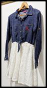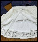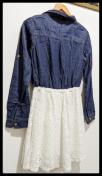 デニム生地の長袖シャツと白のスカートのシンプルでとても可愛らしいデザインです。