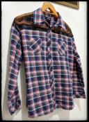 サイズは150で、赤系と青系のチェック柄になります。