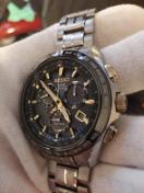 SEIKOアストロンsbxb007になります。ゴールドがポイントになって格好いいモデルです。ベルト1コマに小傷等ありますが、全体的に状態は良いかと思います。こちらのモデルはボタンや文字盤針等一部ゴールドで見た目の高級感がいい感じです。腕回りは195o位で1駒足りない長さですが通常の方には問題なく入る腕回りだと思います。こちらは、純正ケース付属しております。状態は良いかと思いますが神経質な方の購入はご遠慮願います。定価264000円(税込)です。SEIKOショップでコマ調整等して頂いてます。締切日時