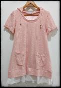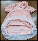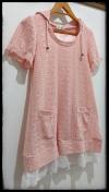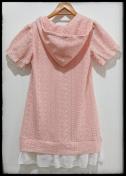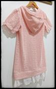 色はピンクでフード・フリル付き、サイズ札にはMサイズ、バスト79から87、身長154から162と記載あります。