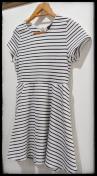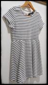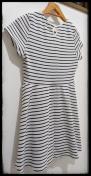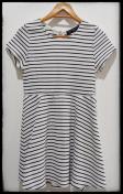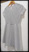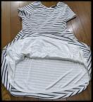 色は白・黒のボーダー柄で、サイズ札にはMサイズ、バスト79から87、身長154から162と記載あります。