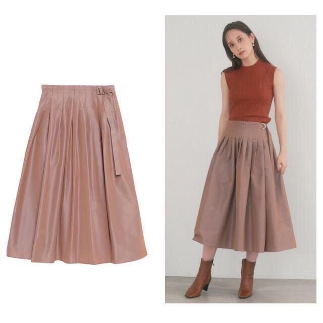 細かめなタックのふんわりとしたタフタスカートは、腰回りが中縫いされているので、すっきりとした印象で着用頂けます。サイドにはDカンパーツをポイントにしたグログランのリボンディテールがあり、インしたスタイリングでもスタイルアップできるデザインに仕上げました。