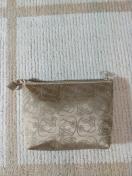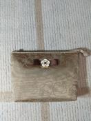 色は光沢のあるベージュでコスメや小物など使い方を楽しめるポーチです。