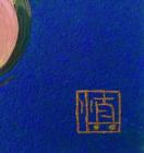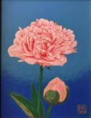 朱色と青色(蒼や碧はグリーンに近いです)のコントラストが綺麗で(補色対比、色の範囲を広げると反対色とも言います)、花びらも丁寧に描かれています。