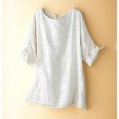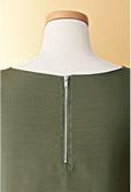 バックスタイルと生地アップの写真は、色違いのブラウスになります。