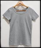 色は灰色、サイズ札にはMサイズ、バスト79から87、身長154から162の記載あります。