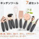 商品内容物:ピザカッター、泡たて、ピーラー、アイスクリームスプーン、おろし、缶切り(オープナー)、にんにく潰し器
