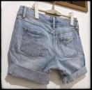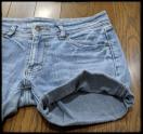 デニム生地、サイズ札にはウエスト61ヒップ89の記載あります。Mサイズ同等かと思います。
