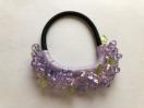 キラキラビーズと葉っぱを盛り盛り編み込んで、紫陽花のヘアゴムを作りました。