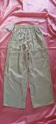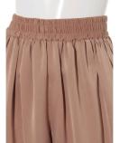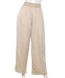 ┗裏地付き。ポケット2個。ウエストゴム。ポリエステル素材で肌触りツルツルサラサラ♪ハイウエストで股上が深くて安心♪ギャザー入りでお尻をカバー♪明るいベージュで合わせやすいですよ♪裏地付き透けない安心♪春秋向きの生地です♪ギャザーのクシュクシュのバランスが良く形も綺麗でオフィスにもカジュアルにもオススメのイージーロングワイドパンツです☆